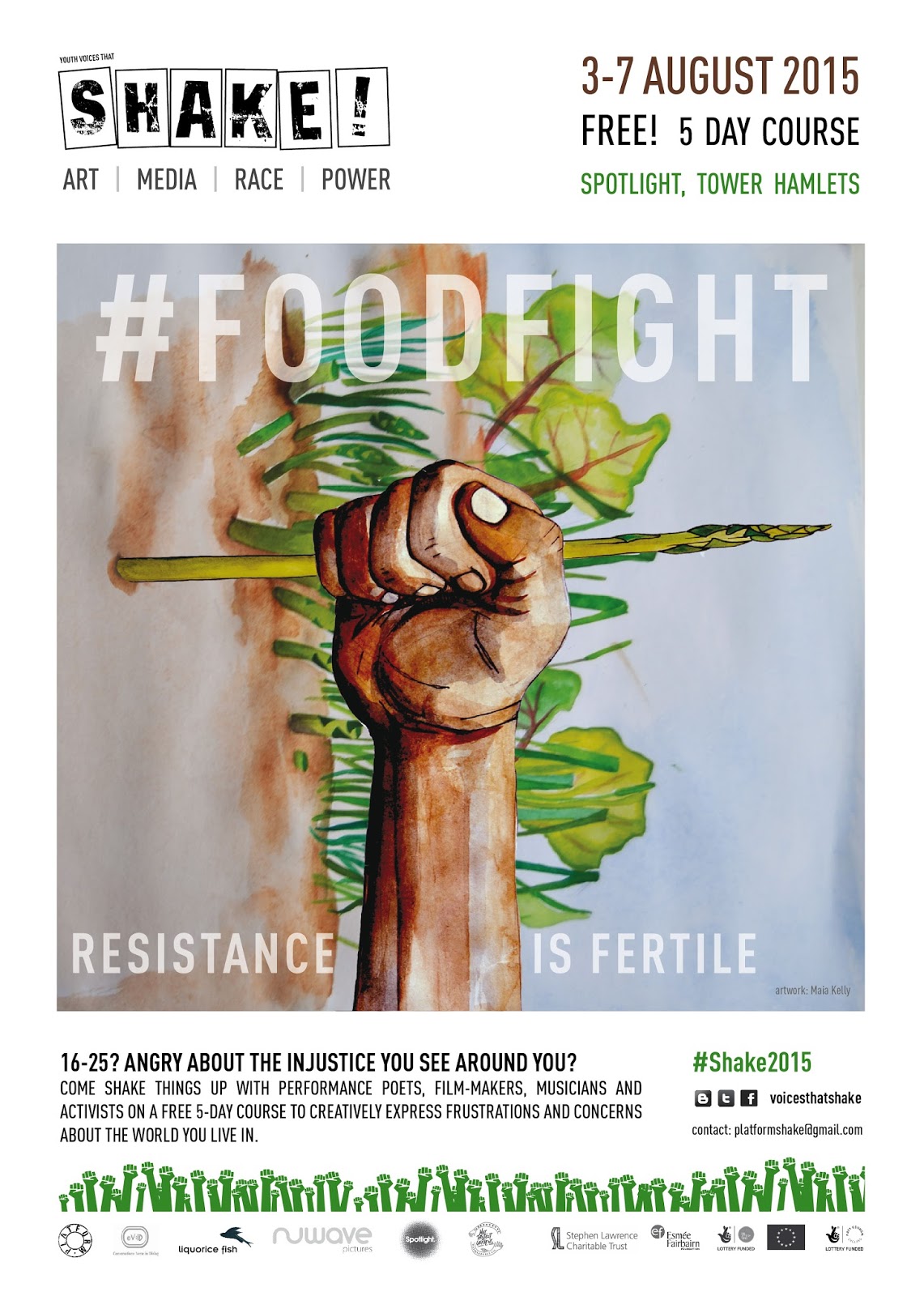 Come shake tings up with performance poets, film-makers, musicians & activists on a free 5 day course to creatively express frustrations & concerns about the world you live in.